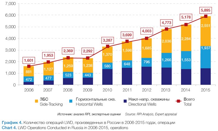 From 2006 to 2015, LWD operations in Russia have been used while drilling horizontal wells and side tracking – generally similar to the use described above for MWD operations. In terms of quantity, the scope for LWD operations is smaller, and again is not widely used in western Siberia. In 2016, the use of LWD systems had increased threefold compared to 2006. This growth, in addition to sidetracking operations, was a direct result of the growing interest from national oil companies in horizontal drilling. In turn, that interest was driven by the improvement of LWD technologies during the period from 2007 to 2014, and the need to drill more complex wells to increase oil recovery.