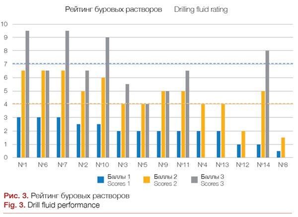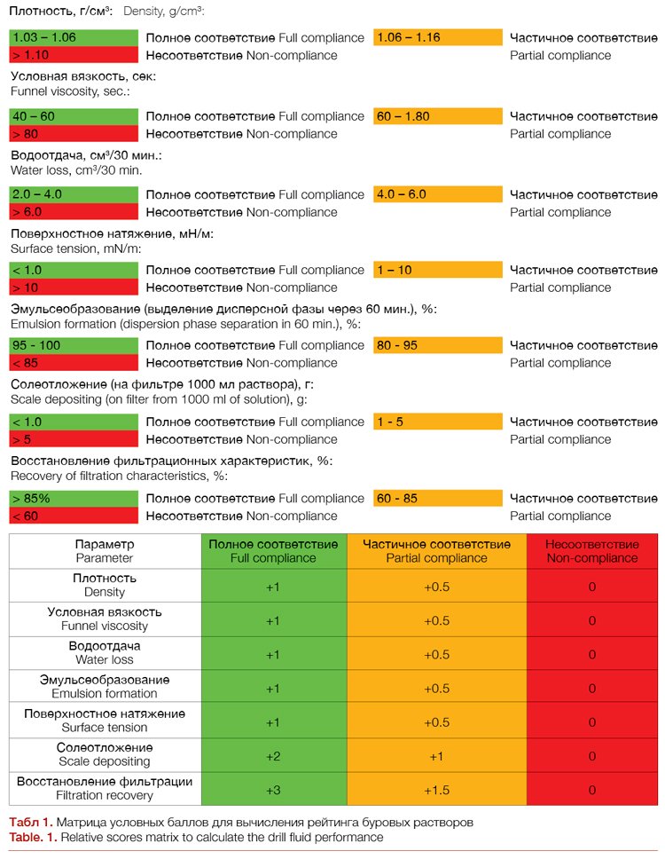 We have adopted a scoring system (Table 1) to estimate the drill mud quality depending on compliance of laboratory test results with the established requirements.