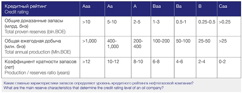 OIL AND GAS COMPANIES RESERVES AND CREDIT RATING