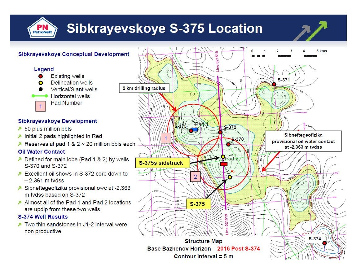 “We are pleased with the results of the S-375s well which confirms that Sibkrayevskoye is a large oil field with better than forecast net pay thickness and quality near the Pad 2 location, which looks likely to be brought into production in the coming months. This strong outcome is tempered by the outcome at the initial target well, which will limit the southern extent of the field somewhat. We look forward to sharing the results of the well test and reserve update with the shareholders when available.”