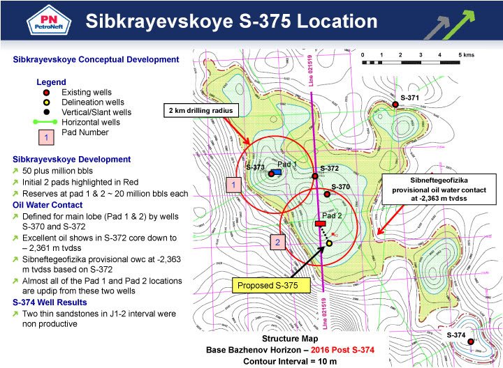 “We are pleased with the testing results of the S-375s which are in line with our expectations and similar to the S-373 which has been producing at a steady rate of about 200 bopd for the last two winters. We plan to resume production from both wells this winter once winter roads are in place to truck the oil to Lineynoye.