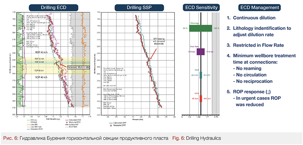 4. Drilling fluid performance. Special in-house designed ultra-low viscosity drill-in fluid was a decisive factor in the project’s success. The concept became field proven being fit for shallow ERD applications, in this particular reservoir formation and, at the same time, providing economic benefits in terms of reduced costs and increased environmental friendliness comparing to the previously used fluid on the project, OBM.