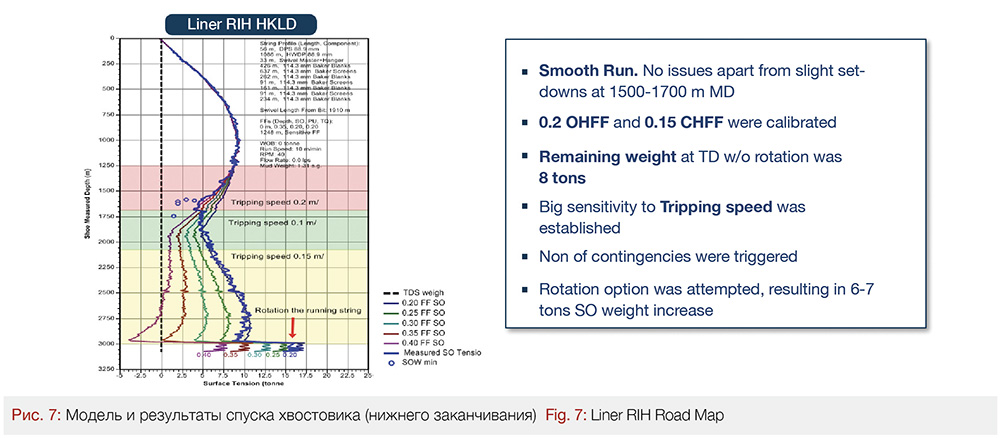 2. Liner Smooth Run was a successful achievement, first – by landing it in the correct (main) borehole and second – not having any drag related issues, friction factor calibrated as minimal as 0.2 OHFF and 0.15 CHFF. A large sensitivity to the tripping speed was established. None of the contingencies had to be triggered (Downhole swivel or full string rotation).