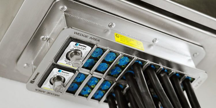 One cut-out for a Roxtec HD (high density) transit can accommodate up to 41 armored or non-armored cables, drastically reducing the amount of space required when compared to 41 cable glands. Use them in terminal boxes, cabinets, enclosures and remote I/O panels to improve space efficiency and cost-effectiveness. Cut weight by half and increase cable capacity by up to 40 percent.