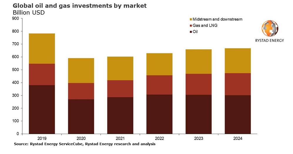 Rystad Energy: Global Oil and Gas Investments to Hit $628 Billion in 2022, Led by Upstream gas and LNG