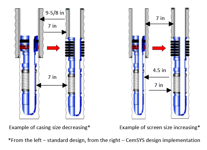 CemSYS System can be utilized for gravel pack purpose (CemPAC) as well as for stand-alone screen completion (CemSAS) with cementing of production casing or without, which gives wide range of combinations.