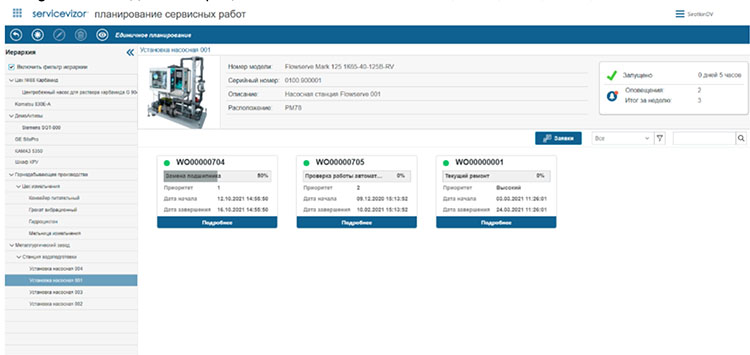 - сформировать базу инженерных знаний по техническому обслуживанию каждого оборудования, включая вспомогательные справочники потребляемых ресурсов при выполнении операций. ServiceVizor позволяет хранить историю обслуживания и ремонтов.