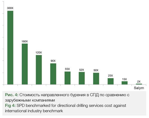 Fueled by the success of the technological advances and the negotiations for breaker fluid, SPD pursued commercial avenues to further drive down the UDC. Even though SPD was ranked no. 1 in cost per meter metrics against international benchmark, and was already working with a high quality international directional drilling service provider, a decision was taken to retender the directional drilling contract. This was justified based on Gazprom Neft Basin benchmarking, which showed a potential for cost improvement. Despite some organizational resistance to the initiative given the already solid performance, the retendering led to commercial cost savings on each well. Directional drilling costs dropped by almost 30%.