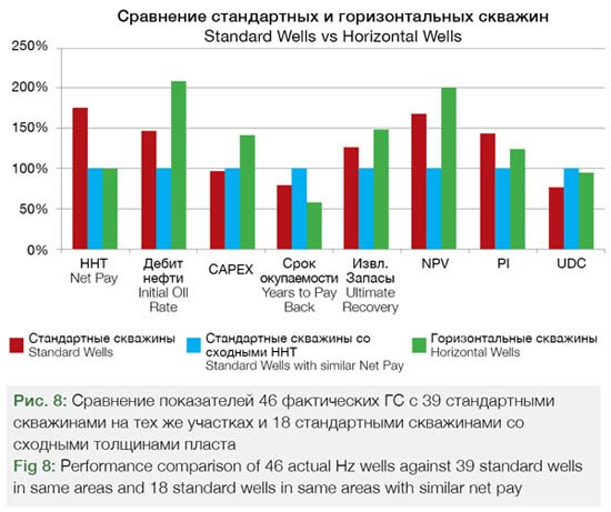 In light if the improvement shown, it is critical for SPD to understand the comparison of performance of 46 actual completed horizontal wells to 39 standard wells drilled at the same time in the same areas of fields. Comparison is complicated by the fact that geological conditions vary even within single area, and standard wells targeted mostly zones with higher net pay. This is because thicker reservoirs have more barriers to vertical flow, which negatively impact not only productivity of horizontal wells, but also recovery factor as a result of not drained volumes of oil. For proper comparison of Hz and standard wells in similar geological conditions – a third category “Standard Wells with similar Net Pay” was added by excluding 21 standard well with high net pay. This category was used as baseline for performance comparison.