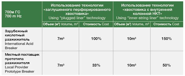 Initial Hz wells were drilled using an acid breaker from international provider, which was expensive and forced SPD to deploy the open hole “plugged liner” system to limit the consumption. SPD joint forces with a local supplier to developed a tailor-made prototype product. Under the supervision of SPD Production technology group, trials were conducted using and the results are tabulated in the table below.