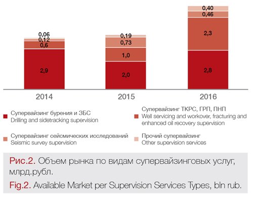 Another market growth factor is the gain in popularity of other types of supervision services. Oil companies that have seen the benefit of incorporating supervision services in drilling and well workover are more likely to use this practice for environmental protection (soil reclamation supervision) and repair (supervision over repair of tubing, ESP, refineries, etc.). Generally, it is safe to forecast the cost of supervision services in 2017 will constitute a minimum RUR 4 billion.