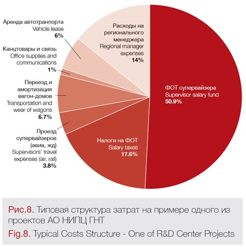 Revenue of the R&D Center depends on the cost of services under the signed contracts and on the work scope. As noted above, the supervision services are to be provided in the extremely competitive market and price pressure conditions created by the oil companies. To demonstrate this phenomenon, let’s consider the dynamics of the sidetracking supervision services cost reduction using the example of the signing of contracts with Slavneft-Megionneftegas when price decreased by 10% as a result of tenders and by 52.7% if adjusted for inflation (Fig. 6).