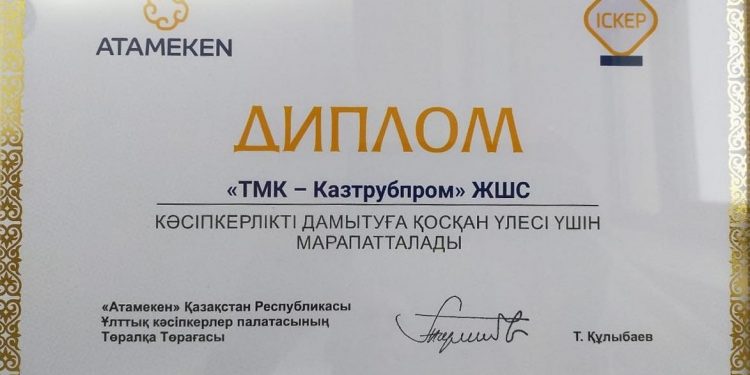 TMK-Kaztrubprom Received an Award from the National Chamber of Entrepreneurs of Kazakhstan