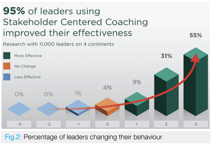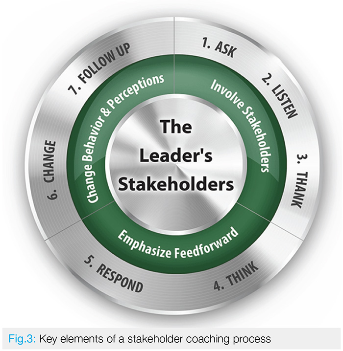 Finally, in stakeholder coaching, the coach is rewarded at the end of the entire process, provided that his client leader has changed in the desired direction as judged by the stakeholders.