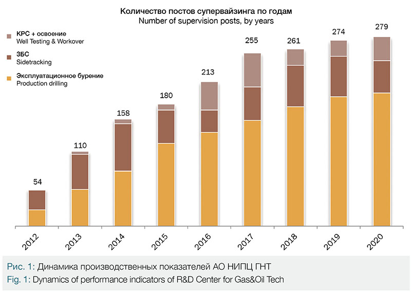 For instance, the digital products Master of Formal Notes and Orders and the Supervisor’s Calculator, developed in R&D Center for Gas&Oil Tech, not only take over a great part of routine work for the manual completion of orders and performing process calculations, but also contain electronic libraries and algorithms for detecting errors, misprints and errors within documents. The software product ROBS grasps well drilling operations data from digital sensors in the mud logging stations. These provide an invaluable support not only for a supervisor but also for the engineers and foremen. The concept of geosupervision, developed and tested by R&D Center for Gas&Oil Tech, which is based on the creation of a headquarters cabin with the drilling crew and its integration with the digital mud logging stations makes it possible to increase the operational efficiency and decision recommendations taken while drilling. Successful operations have been proven by the mobile digital stations during emergency workovers.
