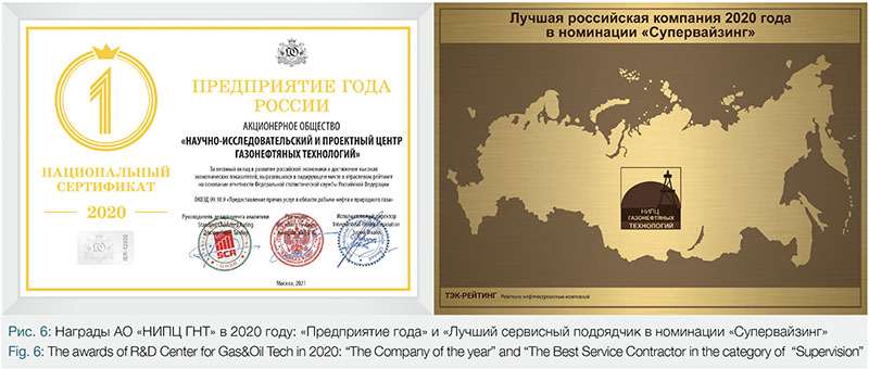 As a result of our efforts, the company was nominated for an award “The Company of 2020” in the category – Provision of Other Services in the Sphere of Oil And Natural Gas Production – (OKVED “09.10.9”) according to the National ratings of companies in the Russian Federation. Another well-deserved honour was the title – The Best Service Contractor – in the Supervision category, which was awarded by the Rating Agency Center of Suppliers of FES (Fuel and Energy Sector)