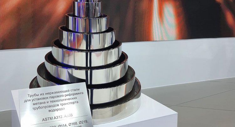 The TMK exposition presents products for hydrogen energy – stainless steel pipes, which will be in demand, in particular, in the construction of complexes for the production of “blue” hydrogen and pipelines for the transportation of hydrogen fuel. TMK also demonstrates high-tech pipes with premium threaded connections for hydrocarbon production.