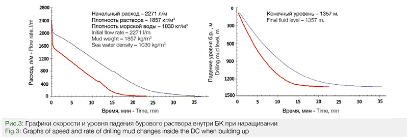 Тем не менее, когда циркуляция прекращается, например, при наращивании инструмента или проверке проявления в скважине, дисбаланс в U-образной трубе выравнивается со скоростью вплоть до 2,4 м3 /мин в течение 15 — 20 мин (рис. 3).