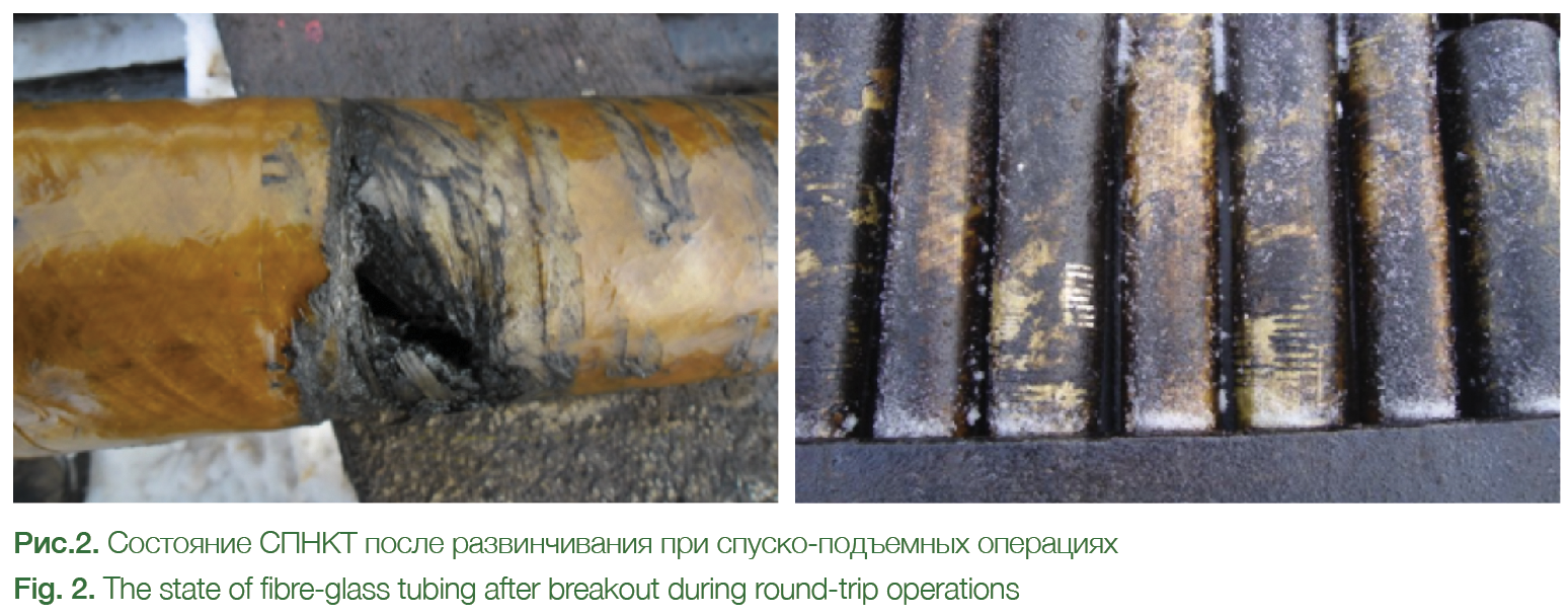 Возникшие проблемы с резьбовой частью трубы при проведении спускоподъемных операций, возможно будут решены путем оснащения стеклопластиковых НКТ стальными удлинителями, на текущий момент продолжаются опытно-промысловые испытания данной конструкции.