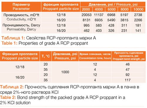 The test results showed that the grade A 16/20-sized RCP proppant sample meets the criterion for «no activation» during shipping or storage: Curing at a pressure of 0.1 atm for 3 hours and a temperature of 35 оС didn’t cause any consolidation.