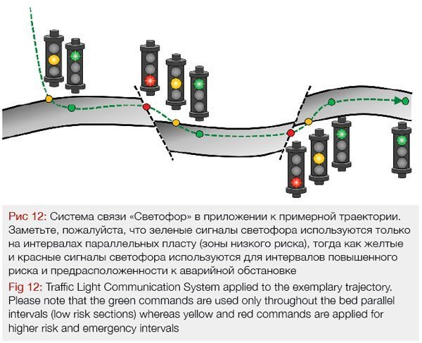 Bearing in mind the low and high risk sections (marked on figure 11 by green and red intervals), it is recommended to use green commands during the bed parallel sections and while traversing through the stratigraphy or outside of the targeted reservoir – yellow and red commands.