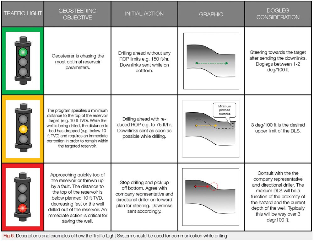 One of the most agile communication methods used between the geosteerer and the directional driller is called the Traffic Light System. The system is an effective and efficient way to communicate quickly and without unnecessary misunderstandings.