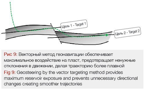 This method assumes that a target is a line with a given dip. The vector targeting method creates smooth transitions between the targets and gives sufficient flexibility to the directional driller to land on a target (on a line). In the event the geological surroundings push for a target change, a new target line – a certain inclination with certain horizontal tolerances – is given to the directional driller so a well can be landed on a new target.