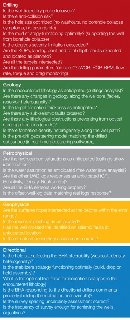 The collaboration of all and each of the above-mentioned parties is of the utmost importance and a successful geosteering process will depend mostly on how well they communicate, share information and data, and how they influence each other’s decisions.